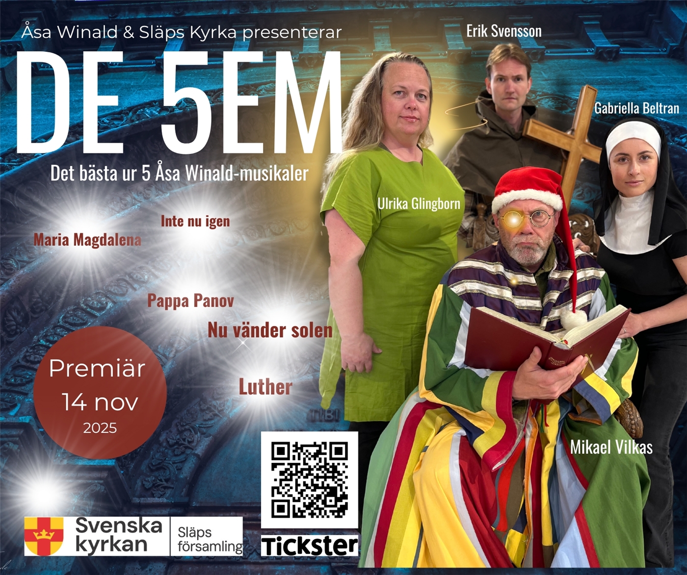 | Produktion Vi lever på show | Arbetsgivare Släps kyrka | Roll / Uppgift Huvudroll | Period 2024 |